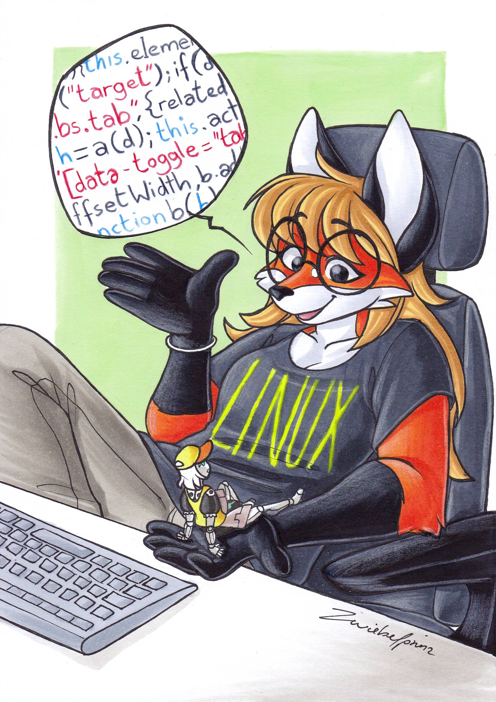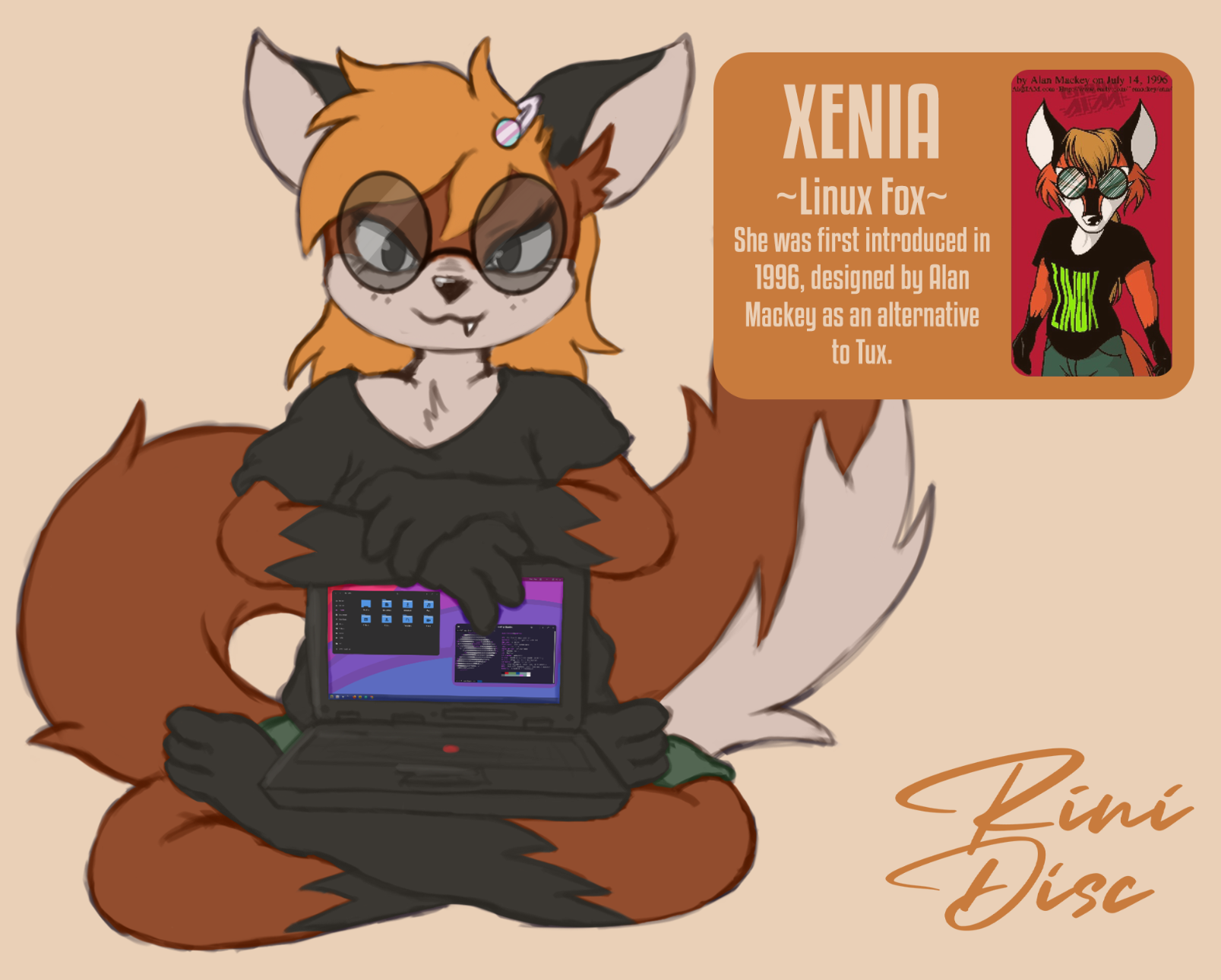 Xenia, the fox girl mascot of Linux, was first designed in 1996 by Alan Mackey.