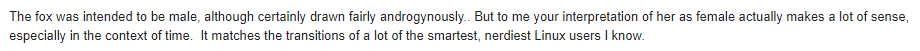 She was meant to be an alternative to Tux, the official mascot. Something that would resurface in an article years later.